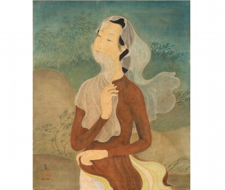 梅忠恕《風》(Le vent),1945 絹本設色,左下角簽名、日期,背後著題識/55x46cm 出處:Romanet畫廊/私人收藏(1940年代從畫廊購入)/後代保存。(法國奧古特拍賣公司提供)