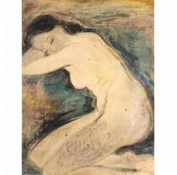 武高談 《裸女》,1941 絹本設色,左下角簽名,日期,背後著題識 尺寸:58.5 x 44.5 cm 出處:阿爾及利亞,阿爾及爾-奧蘭Art Pasteur畫廊;卡昂私人收藏/ 展覽記錄:阿爾及利亞,阿爾及爾-奧蘭Art Pasteur畫廊《越南繪畫之梅忠恕,黎譜,武高談聯展》,展覽編號90。(法國奧古特拍賣公司提供)