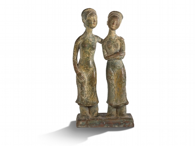 武高談 《兩姐妹》 彩陶,底座上部簽名,底座下部有編號5/10及簽名 尺寸:37 x 18 x 11 cm。(法國奧古特拍賣公司提供)