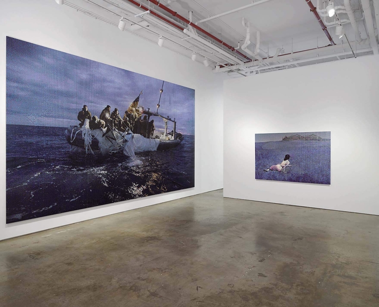 這次在維托.施納貝爾畫廊展出的平面作品圖像有包括了美國軍隊船隻打撈中國間諜氣球碎片的圖像,艾未未在船上加上了美國國旗與美...