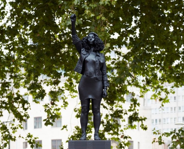 英國藝術家馬克.奎安於15日在布里斯托的原高士敦雕像的基座上重新安放一座以非裔女性抗議者為模特兒的雕像「湧動的力量」呼應...