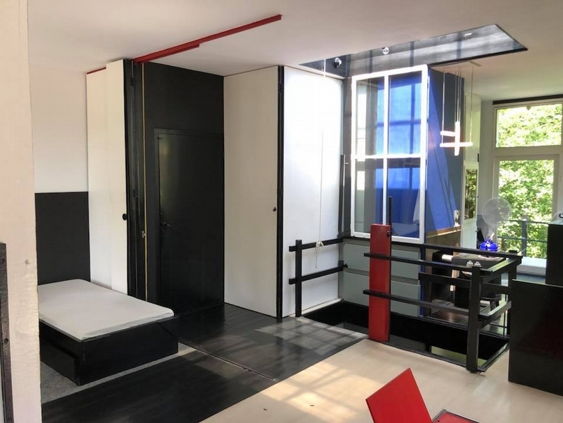 這是建築界千里馬與伯樂的完美組合,共同擠身現代建築的先驅,建築設計師赫里特.里特費爾德(Gerrit Thomas Rietveld) 和屋主施洛德夫人(Truus Schröder-Schräder) 為名,建於1924年。是 1920 年代引領建築界現代化運動的icon之一,建築特色為「紅、藍、黃」三原色的構圖,黑與白為襯,在藝術史上稱之為荷蘭風格派(De stijl),該住宅是「荷蘭風格派運動」建築的最為知名的樣例之一,大概也是唯一正宗的荷蘭風格派運動建築物。建築師里特費爾德即為荷蘭風格派的代表人物。