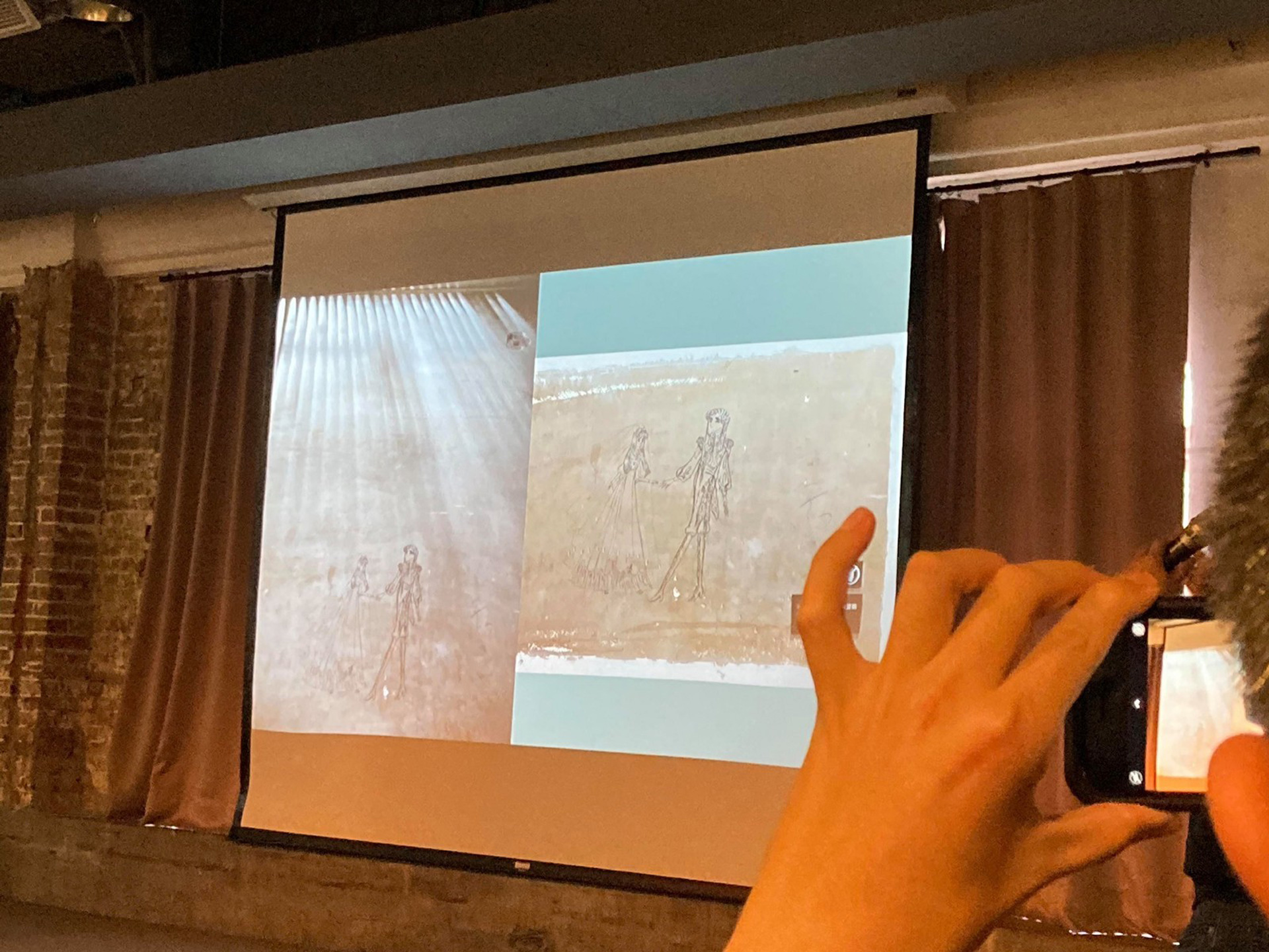 因此,在「大谷光瑞的逍遙園」演講中,當看到、聽到林光浩建築師在「逍遙園」留下那段已頹圮時年、深埋於時光之中的歷史痕跡——「小甜甜與安東尼」(當年軍方徵收為陸軍行仁村眷舍時,住戶所留下的童稚繪圖)。林建築師的展示設計為「逍遙園」註記了一筆比文獻、史料、建築本體都更鮮活的生活與空間記憶。或許依文物性強弱,典藏與否,猶需再議,但從敘事性強度來說,選此展品不做二思。