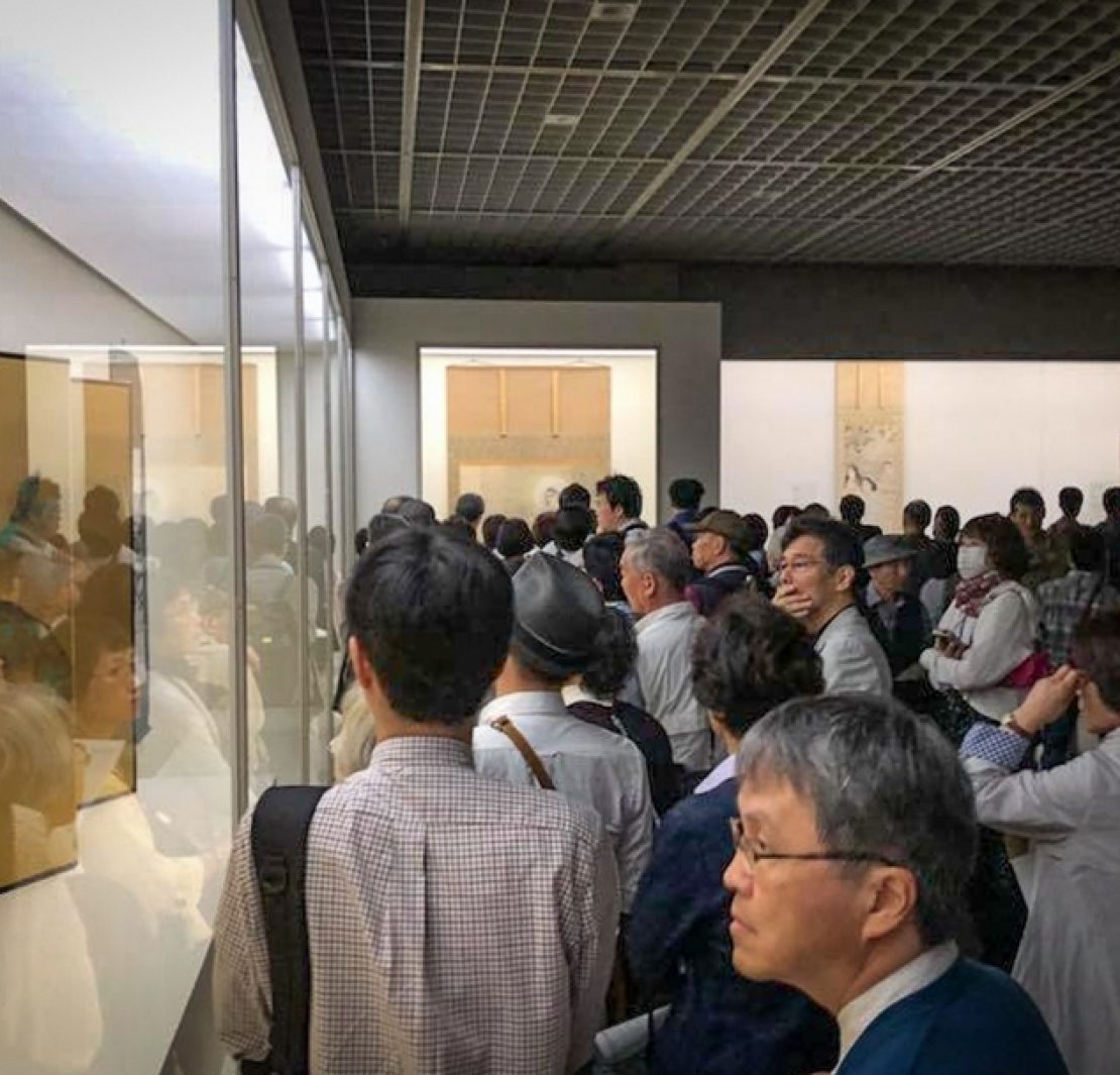 「誕辰150周年橫山大觀展」於東京國立近代美術館的展出現場,觀眾爭賭其精彩的作品。(簡秀枝提供)