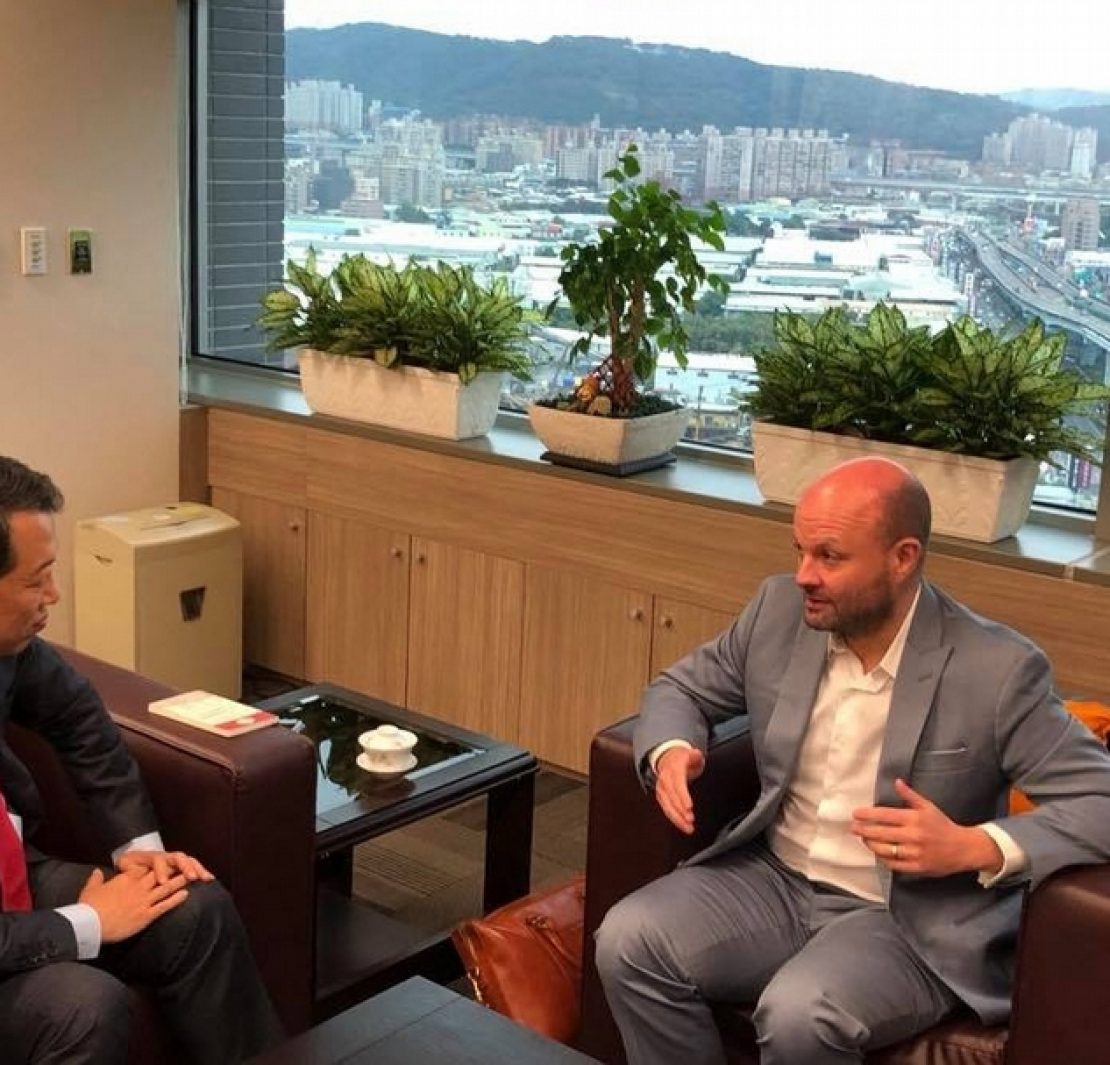 為了新創台北藝博會的計畫,任天晉於1月底來台拜會多個重要藝文單位,以尋求未來連結或合作的可能,圖為其拜會文化部次長楊子葆(左)。圖片提供:簡秀枝