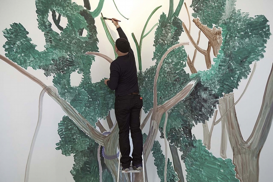 張恩利在「Four Seasons」展覽中作畫。Hauser & Wirth Somerset, 2015. ©Zhang Enli Courtesy the artist, Hauser & Wirth and ShanghART Gallery