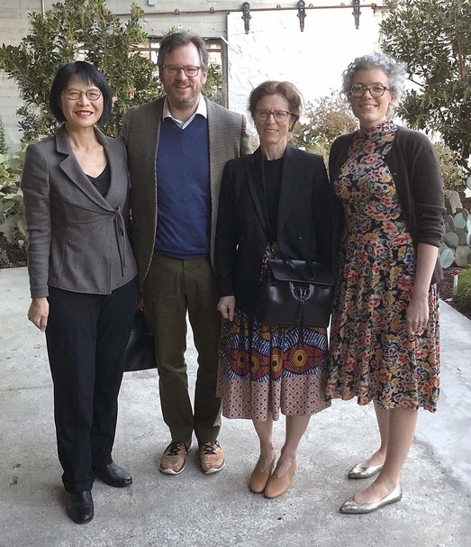 典藏藝術家庭社長簡秀枝與沃斯夫婦(中),右一為資深行銷總監Amelia Redgrift。(攝影/謝盈盈)