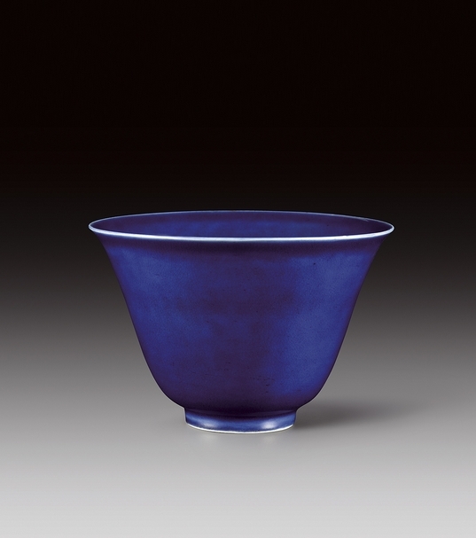 明嘉靖〈霽藍釉鐘式杯〉,竹月堂藏。