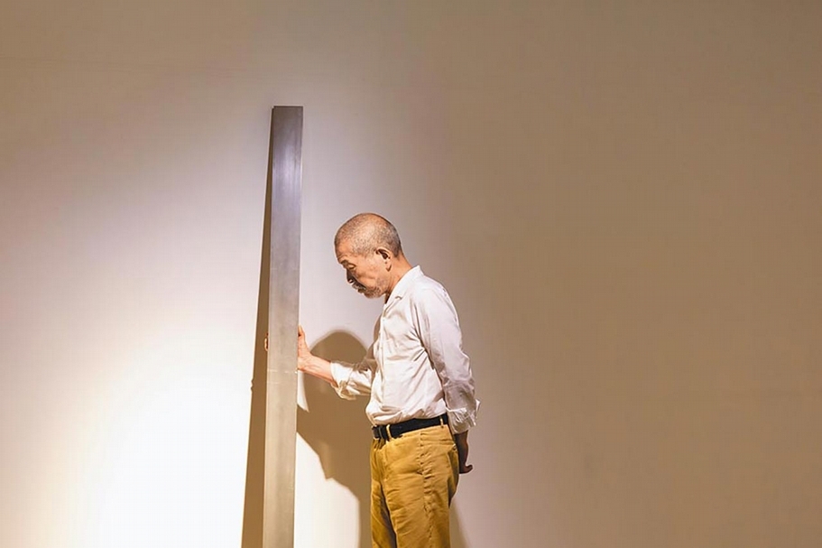 現年73歲的日本「後物派」藝術家原口典之(Haraguchi Noriyuki)日前現身台北,為亞洲藝術中心「物,及其動勢——原口典之」台灣首展,親力親為,丈量、釘樁、布展,主持開幕儀式,讓收藏界見識了日本當代藝術界的一絲不苟。