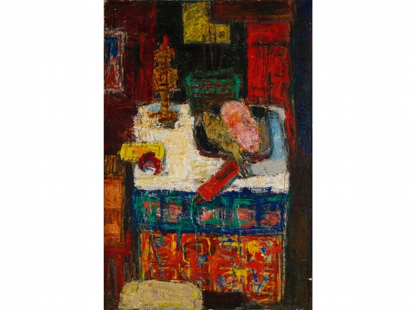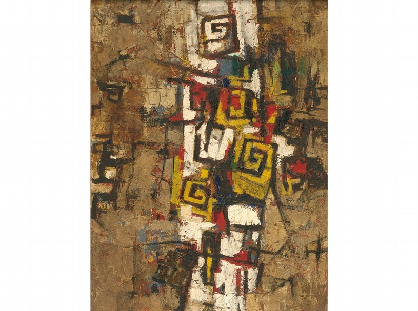 廖修平《祭神》,油彩畫布,128×87cm,1963。(尊彩藝術中心提供)