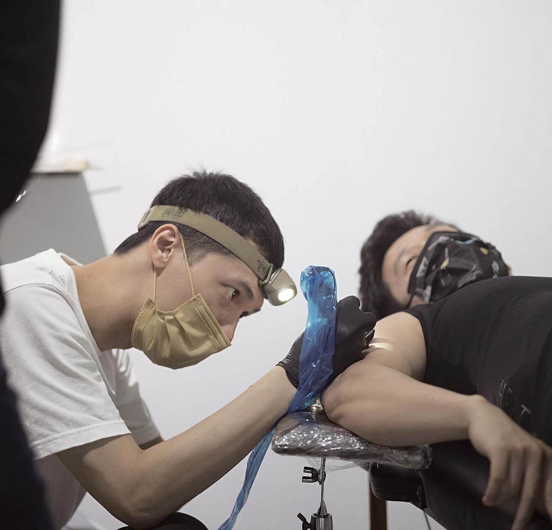 這兩個空間的經營,也不仰賴政府補助。除了有贊助者之外,刺青工作也是李杰恩維持生活的工作之一。