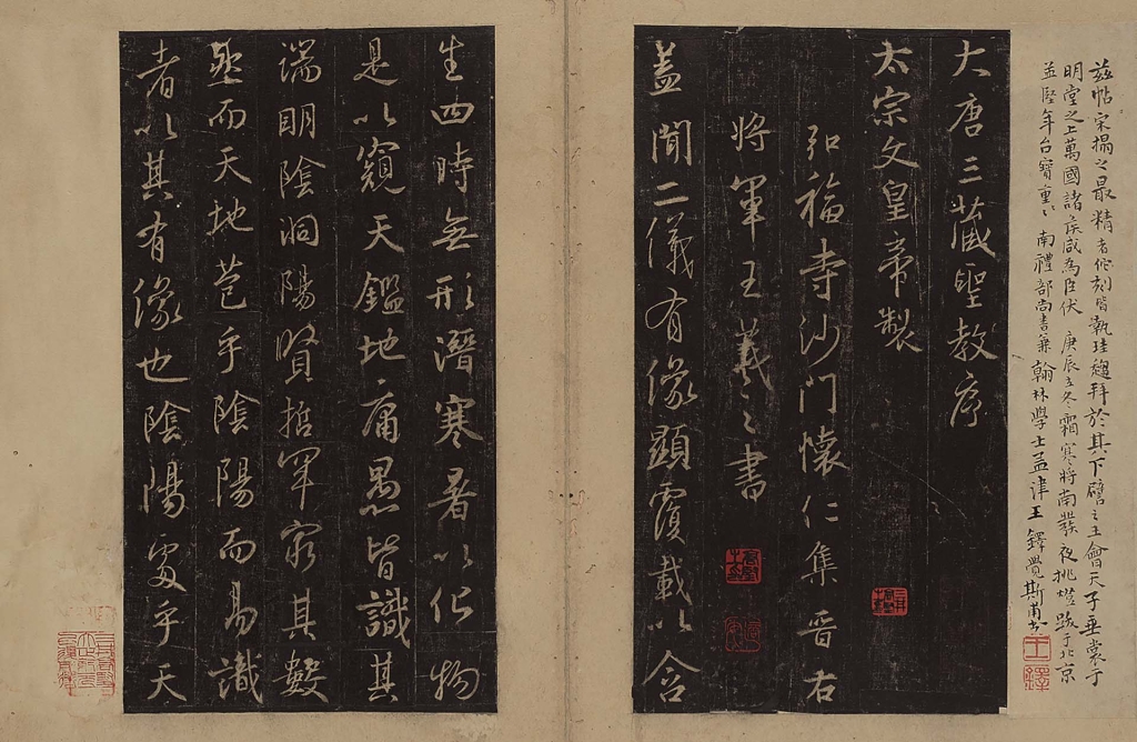 王羲之雖被尊為書聖,但諷刺的是,其並無任何真蹟存世。保存王羲之書法的媒介,包含了摹本和拓本。摹本和拓本由於分別在唐代和宋代達到最高水準,因此被稱為「唐摹宋拓」,相當珍貴。其中,由宮廷專業工匠對王羲之真蹟進行複製的精密摹本,是保存王羲之書法本然面貌的最佳資料。宋代時,則建立起以紙和墨輕鬆製作大量拓本的成熟技術,讓王羲之的書法廣為流傳。