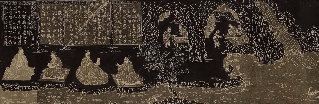 描繪王羲之設宴蘭亭一事的作品,以北宋李公麟所作〈蘭亭圖〉最為知名。在李公麟的畫作中,添加〈蘭亭序〉拓本和種種〈蘭亭序〉相關文獻的〈蘭亭圖卷〉廣受好評,於南宋時被刻為拓本並廣為流傳。