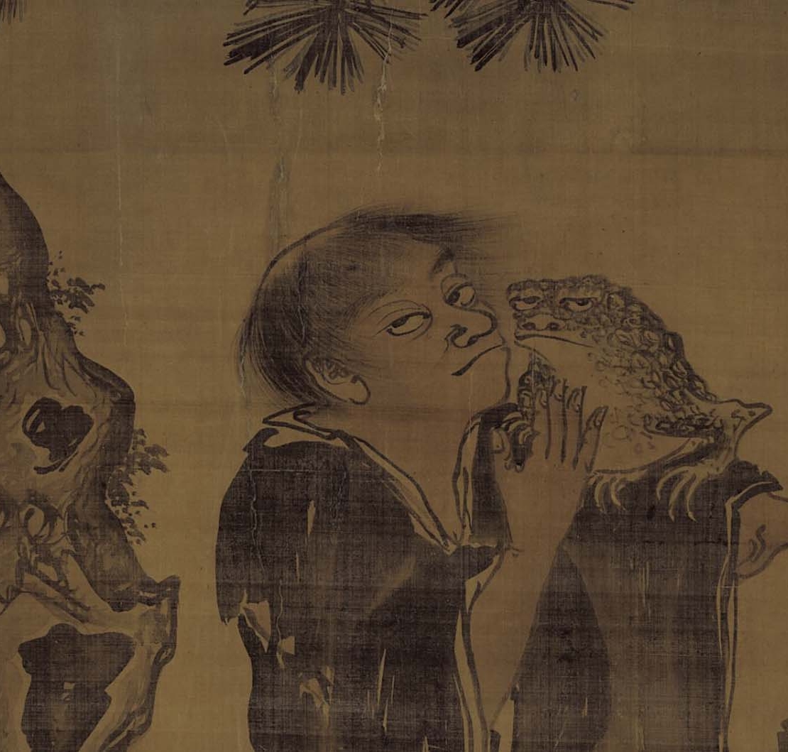 回到基礎的博物館四大功能,研究、收藏、展示、教育,研究之於策展,可以說關係最緊密,且可以說是必備的基礎養成,正因如此,藝術史學方法不只是研究方法,更是一個展覽展示邏輯與敘事邏輯至關重要的基礎。2008年臺北故宮「追索浙派」是筆者至今難忘的展覽,在既有的「藝術的傳統」、「浙派與宮廷的交會」、「北京與南京」、「狂態邪學」四個單元之外,日本漫畫、浮世繪與浙派的距離,或許就是我們受日本次文化圖像影響的距離。明代浙派畫家史文〈玉蟾圖〉(圖5)中人物與蟾蜍的對望的表情,滑稽且充滿互動性,直到現在仍讓我難忘,完全不亞於當前的潮流藝術中趣味性。潮流藝術在今日大行其道,與浙派在當時被稱作狂態邪學的情境,是否有可以參照對話的空間?