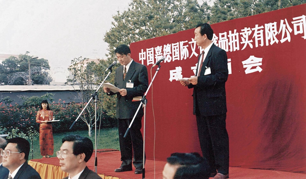 1993年5月18日中國嘉德成立,在北京長城飯店東花園的大草坪上舉行了酒會。綠草坪上誕生出中國最早一家股份製藝術品拍賣公司,於斯生根茁壯,拍賣業的現代企業製度探索邁出了成功的一步。而中國的文物藝術品拍賣也正是在1992年改革開放後正式啟航,嘉德的崛起成長正為中國文物拍賣史作親證。