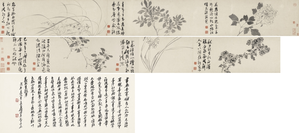 這次佳士得推出重要藏家系列,收到熱烈迴響,特別是二件知名美術史家方聞的收藏,宛如學術保證,一登場即創造漂亮成績。其一為明代陳淳創作於1539年之《墨花懷馨》花卉手卷,全卷長逾四米,各繪折枝牡丹、辛夷、蘭草、秋菊、水仙、山茶,每段之間皆以自題五言絕句相隔,詩書畫合一。此卷清康熙間為桐鄉藏書大家汪文柏(1659-1725)所有,至清末入鑑賞家陳驥德良齋庋藏。另有曾熙1918年所題簽條、同年夏六月卷尾吳昌碩(1844-1927)長跋,甚至有張大千夫人徐雯波女士藏印,流傳有緒,為「白楊」精采之作增色。現場以480萬港元起拍,各方出價不斷,之後現場買家、中國區主席楊媛草(Rebecca Yang)之電話買家、書畫部劉媛(Vicky Liu)電話買家三方展開拉鋸戰,歷時約12分鐘,最終由現場買家勝出,2350萬港元落槌,成交價2881萬元,成為本場第二高價。