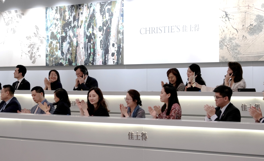 除了千萬高價,溥心畬在本場的表現也十分亮眼,電話、網路、現場買家皆展現高度興趣,有多件表現超過估價。今年適逢溥心畬仙逝一甲子,佳士得特自寒玉堂故友徵得書畫作品13件套,含《烏來遊記》絹本手卷、《變葉木賦》、《歸去來辭》成扇、《嫦娥奔月》絹本、《翠蔭晚景》、《一葦渡江》、《十二月令》書法聯屏等,多為渡海初期作品,買家反應熱烈,11件成交。其中《嫦娥奔月》尺幅精巧,氣質空靈,現場、網路、電話買家累積24口競價,終由中國書畫部主管游世勳的電話買家以120萬港元落槌,逾低估價7倍多151萬2000港元成交,成為亮點。此外,《十二月令》獲100萬8000港元成交價,《烏來遊記》得88萬2000港元成績。