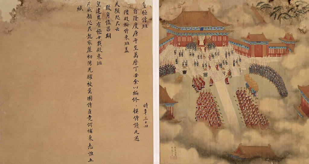 另一類與仕宦生涯有關的畫作,或稱之為「待漏圖」。以大英博物館收藏〈北京宮城圖〉為代表,圖中主要描繪各進宮殿在層層雲霧中若隱若現的北京紫禁城,在宮門前與華表柱之側佇立著一位身形高大、與城樓建築尺寸相較,明顯不成比例的官員,梁冠帶佩,紅袍秉笏,似在待漏,亦即等候早朝。畫面前方則有身著羅袍,相互打躬作揖的官員及其侍從人馬等。與此圖構圖相類,然細節不同的畫作在國立故宮博物院、中國國家博物館以及南京博物院等皆有收藏。