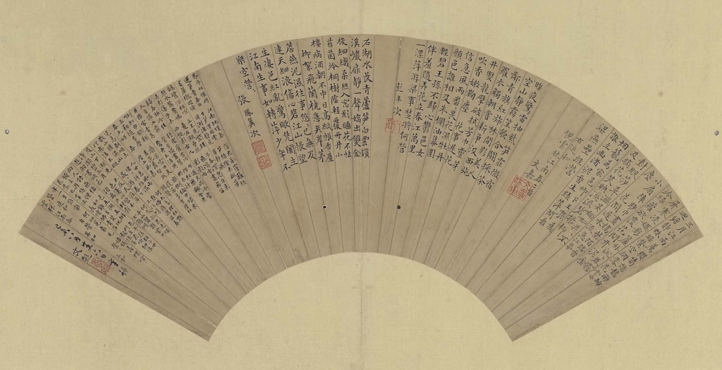 白文印就展現出很不一樣的光景,69歲〈書千文〉上的「文壽承氏」印,疏密有致的章法,搭配變化多端的刀法,頗有漢印急就章的味道。相較同作上所鈐的朱文「國子先生」,「子」仿自「趙氏子昂」印,其餘三字也多借鏡元朱印的篆法,整體上沒有《文三橋詩稿冊》上那些朱文印來得精彩。儘管在篆法與章法還是相當接近,只是在線條的掌握上有所不同,有著精緻與粗糙的差別,這種差異很可能就是專業刻工與文人的區別。陰刻的狀況恰恰相反,刻製工匠不僅無法精準掌握筆意,也難以表現出運刀的趣味,例如《文三橋詩稿冊》上三個白文印,線條都偏向光潔均勻一路,整體顯得略為單調且缺乏創意(表3)。