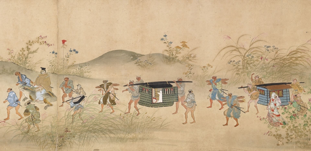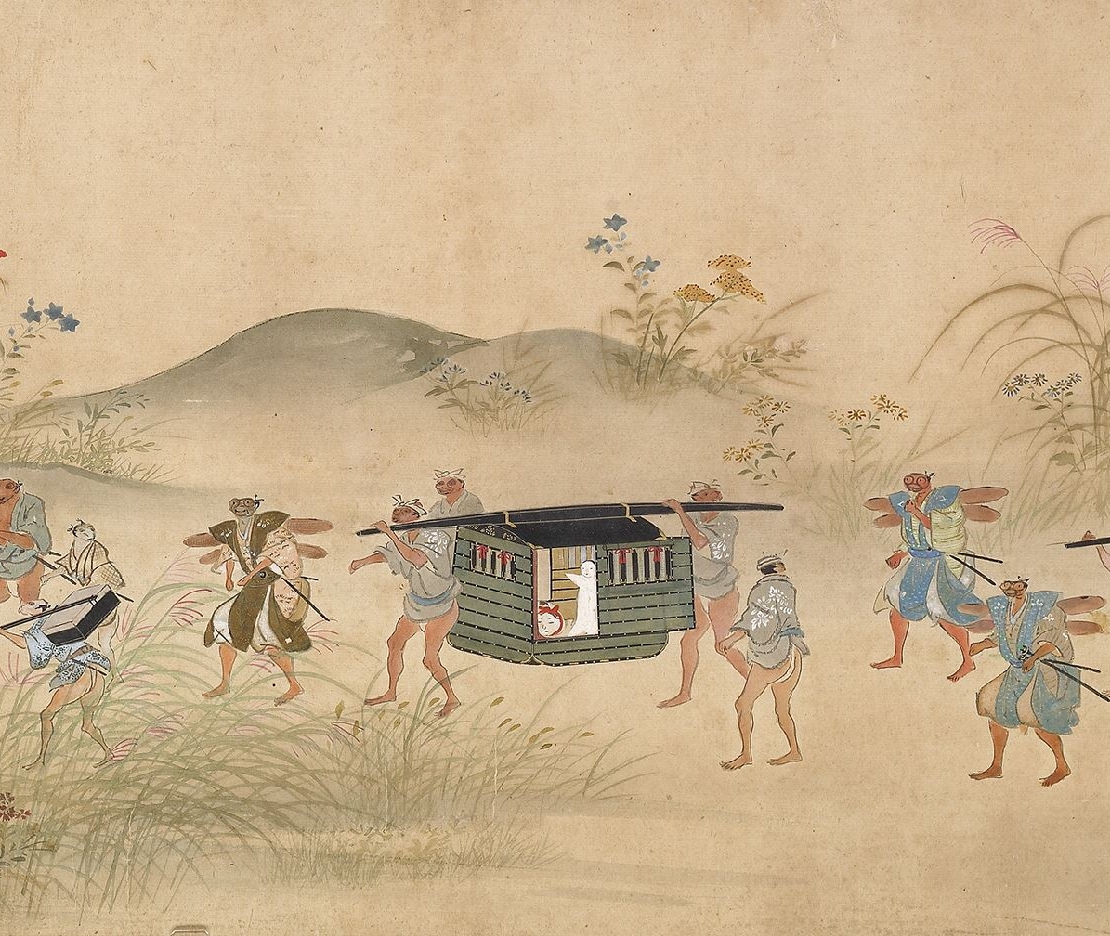 自古以來,便有許多蟲子們在日本的物語及和歌裡登場。住吉如慶的〈螽斯繪卷〉中,蟬、蜩與螽斯們圍繞著美麗的玉蟲姬展開競爭,最終由蟬之右衛門督贏得公主芳心,玉蟲姬進入了其輿轎。行伍裡的蟲子們雖然乍看下是人型,但臉部卻是根據蟋蟀等蟲子來繪製的,當中還有從上衣衣袖之間飛伸出翅膀的蜻蜓侍從。