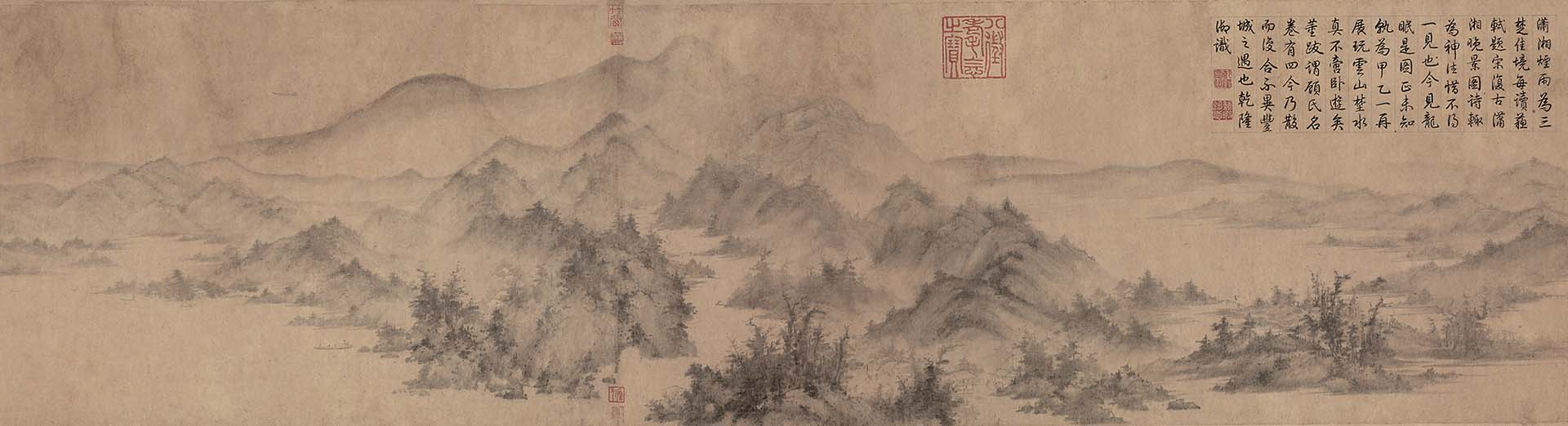 克里夫蘭美術館很榮幸可以展示東京國立博物館的國寶〈瀟湘臥遊〉。此卷描繪被霧氣籠罩的連綿山丘與曲折河道,也就是瀟湘兩江之交匯處。這件作品是在長江三角洲所構思的,但也可被理解為描繪佛教禪宗觀念的意象,即萬物皆空,唯有佛法為真。