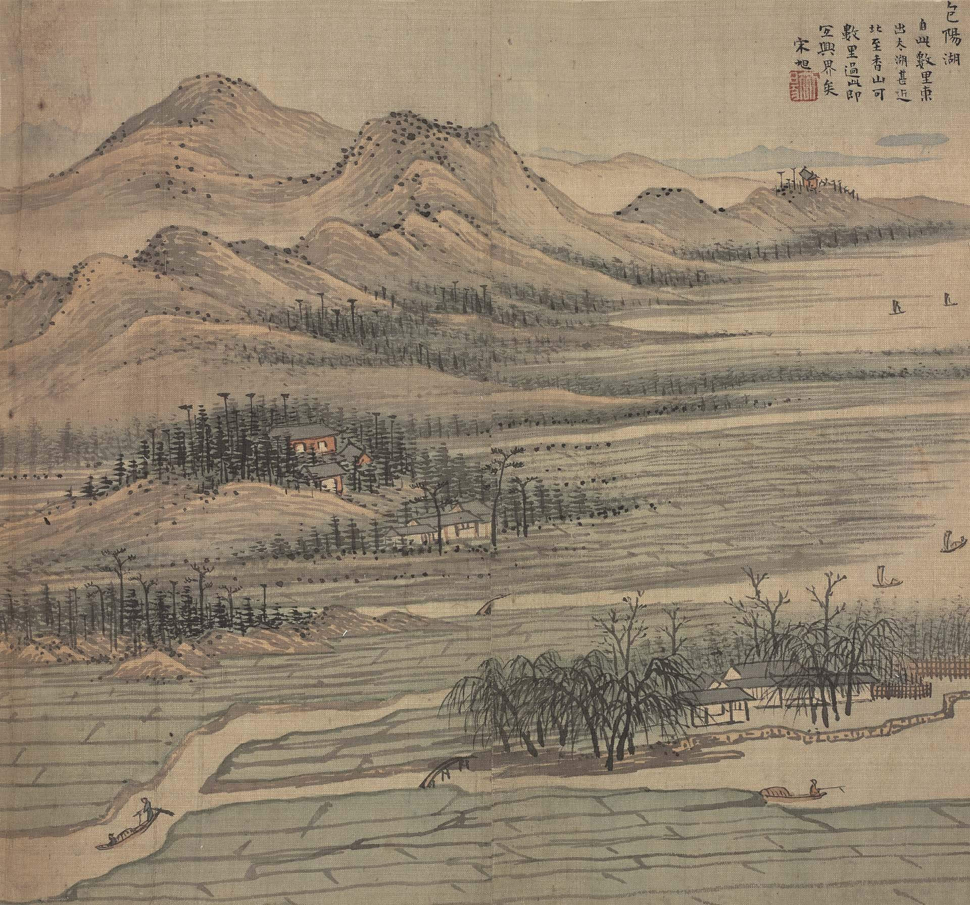 長江三角洲下游具有臨海的地理優勢。它眾多的天然河道與溫和的氣候促進了商品的運輸與貿易,也使得該地區肥沃的土地、湖泊、沼澤適合農耕。而這個擁有豐富水源的亞熱帶環境,被譽為中國的魚米之鄉,傳統交通工具仰賴船隻。城市也扮演著重要的角色,例如:擁有許多私人園林的蘇州,因布滿超過三百座橋樑與河道,而被稱為「東方威尼斯」。在本次展覽中,觀眾可以看到畫作中的風景在11世紀到18世紀這段期間的變化,從廣闊濕地到耕種的稻田,從居住在河岸的漁民到後來會因船隻進出城門導致交通堵塞的水鄉澤國。
