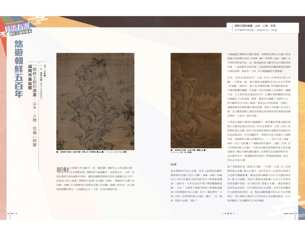 中國繪畫在朝鮮時代備受重視,而朝鮮前期的山水畫又特別重視北宋時期由李成(約919-967)和郭熙(1023-1085)為代表的李郭派作品,這一點無論是從文獻或作品中都能得到印證。上述兩幅作品的出現,有助我們更具體地推想在朝鮮王朝的前期,被認為「古典」的中國繪畫是什麼模樣。