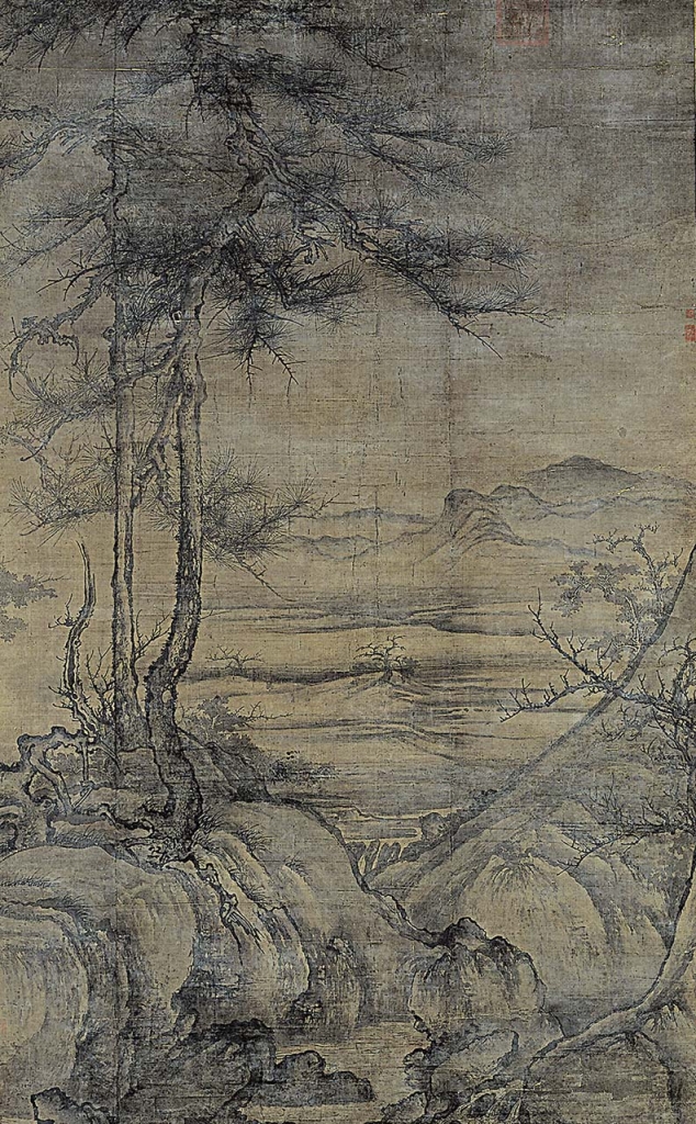 〈喬松平遠圖〉書有活躍於北宋早期的文人畫家李成(919-967)的落款,通常視為李成所創「平遠」山水構圖的最典型之作。畫中前景的巨大雙松與中景的枯木形成鮮明對比,突顯了遠近感;設置於畫面中央的地平線,則建構出無窮遠的空間──與唐代的山水畫相比,其表現可謂極富新意。〈喬松平遠圖〉與北宋中期李成一派的作品,如(傳)許道寧的〈秋山蕭寺圖卷〉(京都藤井齊成會有鄰館)等作品,在基本構圖上頗有共通之處。