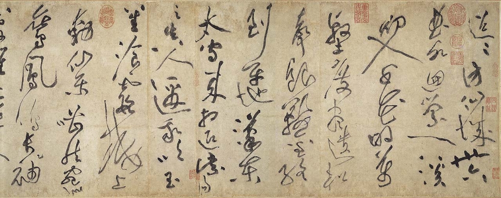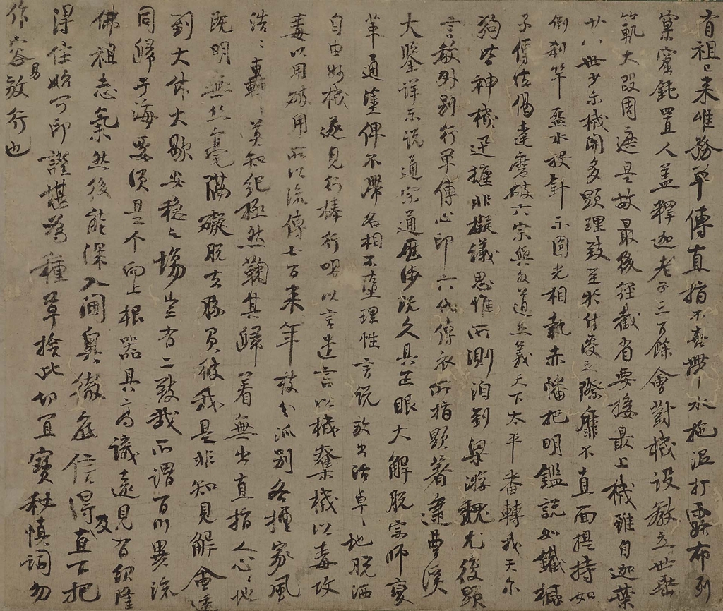 此外,雖然現存的禪僧墨蹟多為南宋和元代的作品,但其起源實可溯及北宋時期。在日本以「漂流圓悟」(譯註:流れ円悟,日本的傳說中,這幅墨蹟曾以裝在泡桐木筒內的狀態漂流到鹿兒島坊津海岸)著稱的國寶作品──圜悟克勤(1063-1135)〈印可狀〉(東京國立博物館)這件珍貴的北宋時期墨蹟,也將在本展隆重登場。