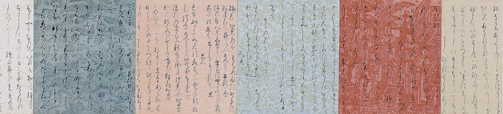 另一個廣為人知的例子是,10至11世紀,差不多是北宋時期,日本開始流行使用自北宋傳入、有紋樣的「唐紙」,12世紀日本能自行生產「唐紙」之後,使用的風潮更為盛行。在〈古今和歌集序(手卷本)〉(東京大倉集古館)所使用的紙張上,不僅可見裝飾圖案,更有可媲美繪畫程度的人物、花鳥紋。這種風靡日本平安時期貴族,使用花箋紙的「中國」風尚,其源流可溯及北宋,如沈遼(1032-1085)〈動止帖〉(上海博物館)、蘇軾〈行書李白仙詩卷〉(大阪市立美術館)和黃庭堅〈自書松風閣詩〉(國立故宮博物院)等。不僅如此,根據2018年國立故宮博物院「宋代花箋」,可確認許多北宋文人的書法作品都書寫於花箋紙上,顯然當時花箋紙在皇帝與文人之間相當流行。所以說,平安貴族使用印有紋飾的紙書寫的行為,應是有意識地效仿北宋文人活動,因此在討論日本對北宋文物的愛好時,文物的質與量都變得極為重要。