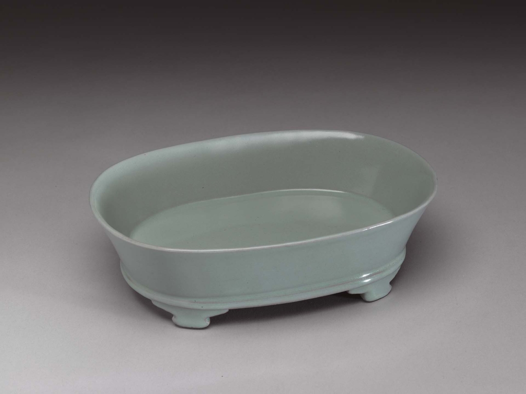 北宋 汝窯〈青瓷無紋水仙盆〉