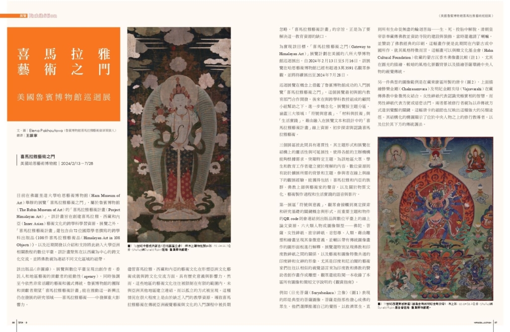 目前在佛羅里達大學哈恩藝術博物館(Harn Museum of Art)舉辦的展覽「喜馬拉雅藝術之門」,屬於魯賓博物館(The Rubin Museum of Art)的「喜馬拉雅藝術計畫(Project Himalayan Art)」,該計畫旨在創建喜馬拉雅、西藏和內亞(Inner Asian)藝術文化的跨學科學習資源。展覽之外,「喜馬拉雅藝術計畫」還包含由72位國際學者撰寫的跨學科出版品《108件喜馬拉雅藝術品(Himalayan Art in 108 Objects)》,以及近期開發以介紹和支持將此納入大學亞洲相關教程的數位平臺。該計畫聚焦在以西藏為中心的跨文化交流,並將佛教視為連結不同文化區域的紐帶。
