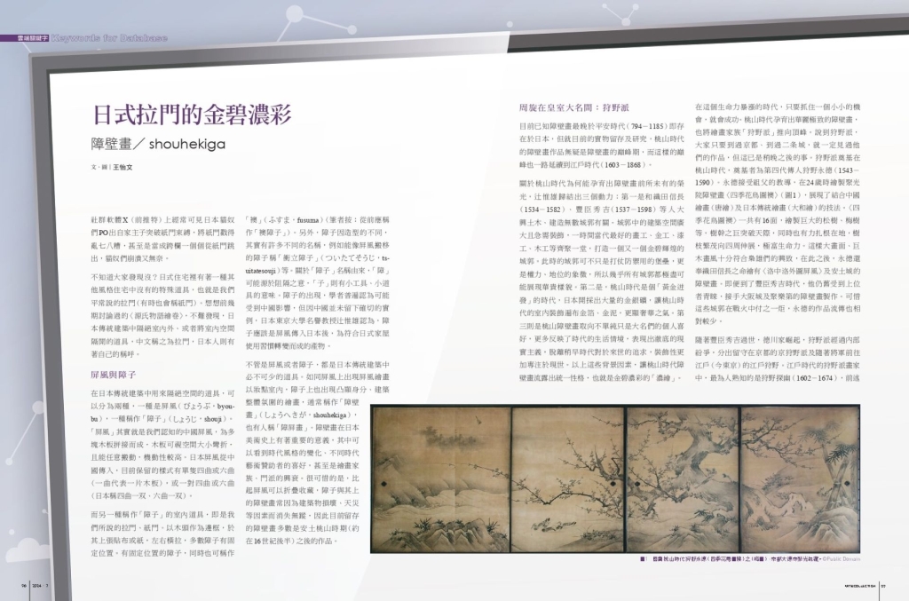 不管是屏風或者障子,都是日本傳統建築中必不可少的道具。如同屏風上出現屏風繪畫以妝點室內,障子上也出現凸顯身分、建築整體氛圍的繪畫,通常稱作「障壁畫」(しょうへきが,shouhekiga),也有人稱「障屏畫」。障壁畫在日本美術史上有著重要的意義,其中可以看到時代風格的變化、不同時代藝術贊助者的喜好,甚至是繪畫家族、門派的興衰。很可惜的是,比起屏風可以折疊收藏,障子與其上的障壁畫常因為建築物損壞、天災等因素而消失無蹤,因此目前留存的障壁畫多數是安土桃山時期(約在16世紀後半)之後的作品。
