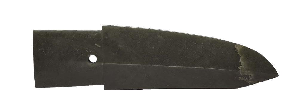 在這樣的背景下,乾隆帝對玉器製作有了更多想法,不僅對古代玉器鑑賞有自身的學養知識,在位時也讓宮中出現不少仿古玉器。這裡所說的仿古玉可分為兩種情況,一是仿古代玉器,如是次展品清乾隆〈玉戈〉(圖1),仿製商代玉製戈,並刻有「大清乾隆仿寶」篆書陰刻款。另一種情況則是以玉器仿古代青銅器造型,如展品清乾隆〈玉獸面紋貫耳壺〉(圖2),仿自商晚期青銅器貫耳壺,器頸處雕刻獸面紋,器底刻「大清乾隆仿古」隸書款。