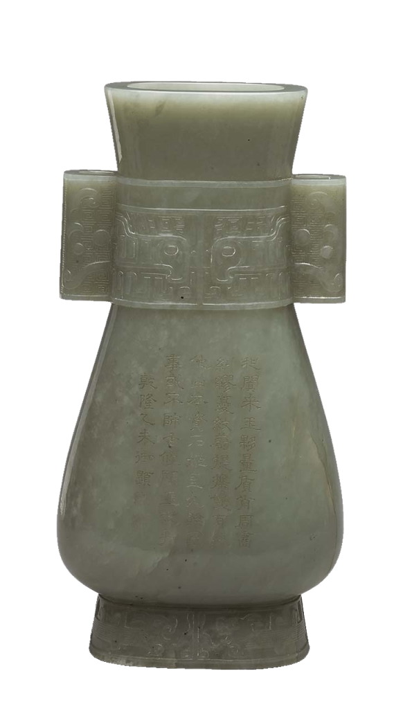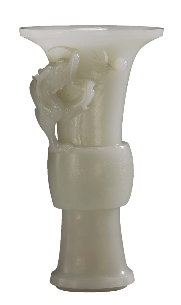 說到清代玉器,就不得不說乾隆朝的玉器發展。清乾隆二十五年(1760)平定回亂,正式將回部納入清帝國版圖,玉料重要產地新疆和闐成為大清帝國的領土。相較宋、明兩代僅能以進貢和買賣等間接方式獲取玉料,有清一朝,特別是乾隆朝,能夠獲得量多、品質又好的玉料。玉料獲取使宮廷玉器蓬勃發展,如意作、玉作等造辦處單位製造無數精緻的玉器。另一方面,千里而來的異域作品,如「痕都斯坦玉」透過買賣及進貢來到中原,並受乾隆帝讚賞。