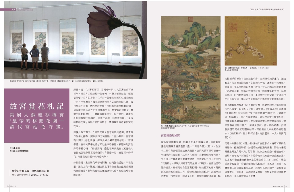 綜觀全場,上百株花草爭奇鬥艷,如何抓住重點,不在花叢中迷失方向?策展人國立故宮博物院書畫文獻處助理研究員蘇雅芬,親切為提供四種觀展切入點,助您攻略移動的花園。