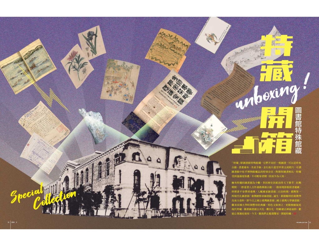 擁有特藏的圖書館為少數,多因歷史因素而得天下薈萃:抗戰期間,一群愛書人合作搶救萬冊古籍,一路如電影般偵查避敵,終將平安帶到臺灣,入藏國家圖書館;日治時期,臺灣第一所現代化圖書館「臺灣總督府圖書館」誕生,累積獨特的臺灣學及南方資料,即今日之國立臺灣圖書館;國立臺灣大學圖書館,繼承帝國大學時期豐厚的典藏,特色文庫林立,更積極擴展近現代特藏。隨著圖書館公共化、數位化,特藏褪去神祕面紗,歡迎公眾親近使用。今次,隨我們走進閱覽室,開箱特藏。