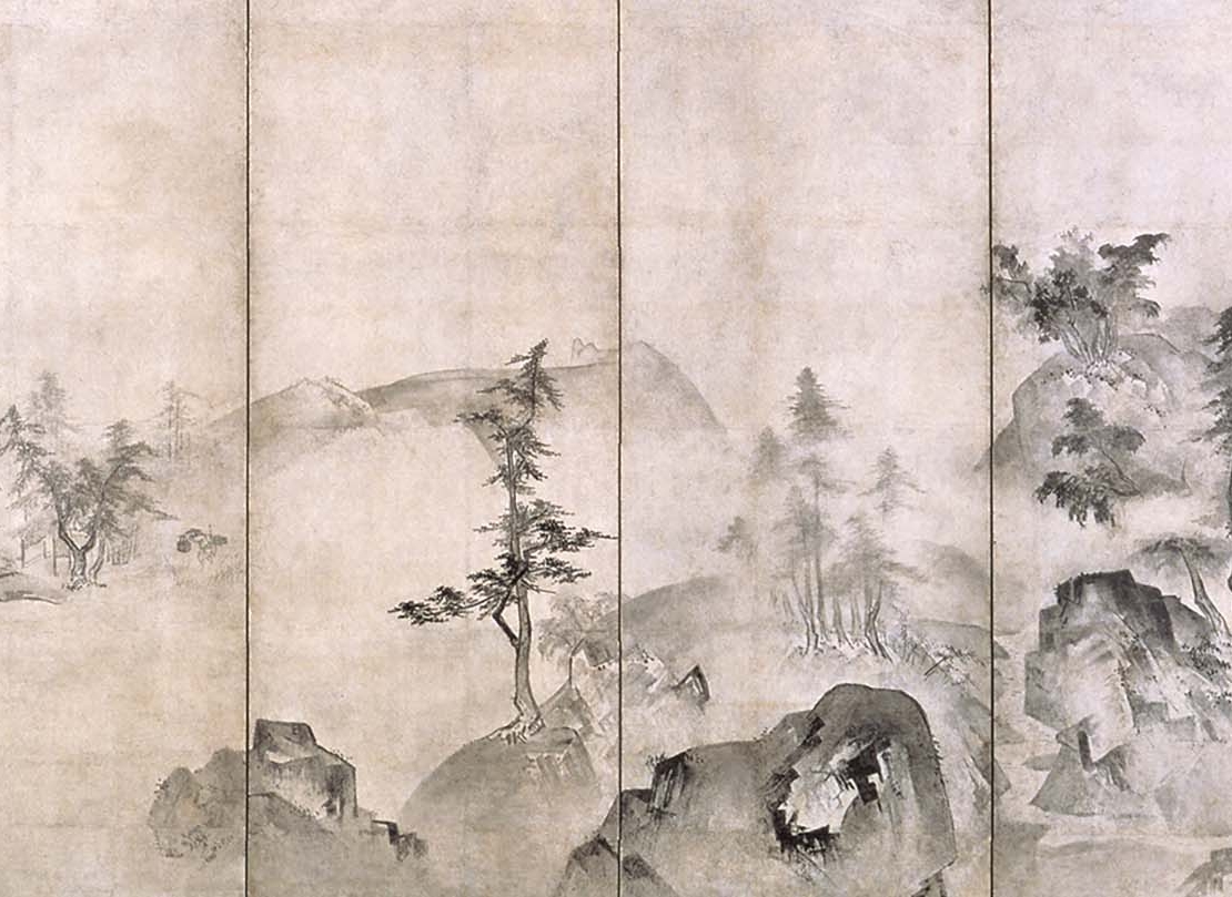 周文(生卒年不詳)是室町時代的畫僧,同時也是相國寺的禪僧。據說他先是仿效如拙的畫,後來成為足利幕府的御用畫師。如今已無法確認他有哪些真實作品,是個帶著許多謎團的畫師,但他培養出雪舟、墨谿和文清等弟子。據記載,周文曾創作詩畫軸,為宮廷和幕府的相關建築繪製障壁畫,也繪製屏風和襖(紙拉門)等大型作品。
