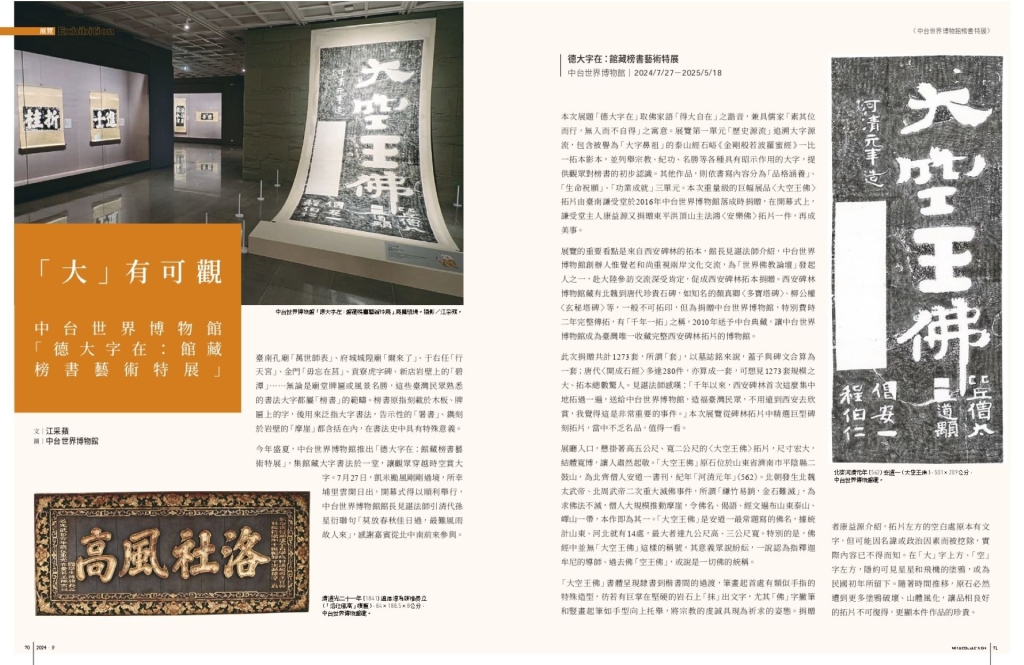 (本文出自《典藏.古美術》384期〈「大」有可觀──中台世界博物館「德大字在:館藏榜書藝術特展」〉,作者:江采蘋。)