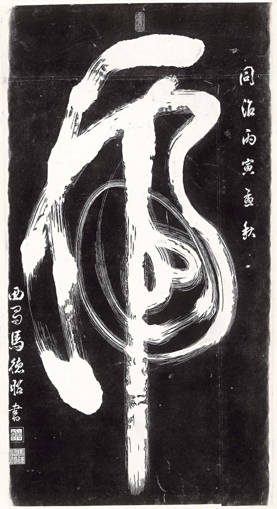 在西安碑林中,有一位特別的人物─清代武將馬德昭,他在書史無名,曾任甘肅提督,於同治年間的回民起義中三度守住西安,受人民愛戴,故將其書法勒石並收入碑林。西安碑林中收有顏真卿作品七通,而馬德昭竟有八通,可見他在西安的特殊地位。本次展覽展出多件馬德昭的作品,內容貼近常民生活,如一筆書「虎」、「如意」的造型為民眾所熟知,特別是〈一筆「虎」字〉令人聯想到草嶺古道虎字碑,頗有親切感。馬德昭亦喜歡寫組合字,〈花甲重週「壽」字〉遠觀為「壽」字,實由「九十九」、「廿一」合體,二者相加為一百二十,故曰「花甲重週」,有祝壽延年之意。〈集字魁星點斗圖〉近文字畫,魁星的身軀由「正心修身,克己復禮」變形組成,踢斗與鰲頭皆直接以文字表現,是現今常見的魁星圖之一。