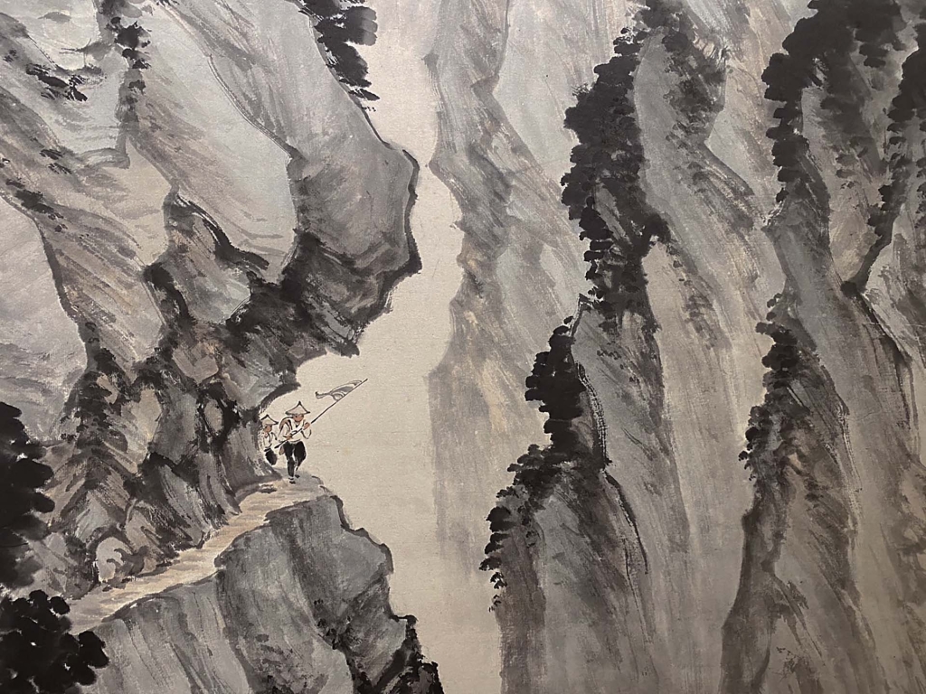 在張大千數度來臺期間,多次與親友結伴前往橫貫公路旅遊,受到當地藝術人士的歡迎。張大千曾與么女如是說:「橫貫公路是國畫的好畫材,是一輩子也畫不完的,它雄偉的氣魄,有點像大陸上四川的景物,到那裡就好像回到故鄉。」在畫作中,多次可見張大千以橫貫公路為主題入畫,多是山勢峻峭、景貌別具特色的太魯閣:兩側峭壁聳立,下臨湍流的地貌讓人印象深刻。直至日後眼力不佳,仍以潑墨繪製此主題,可見畫家對於太魯閣風景的厚愛,與其無法返家的鄉愁,有密不可分的連結。