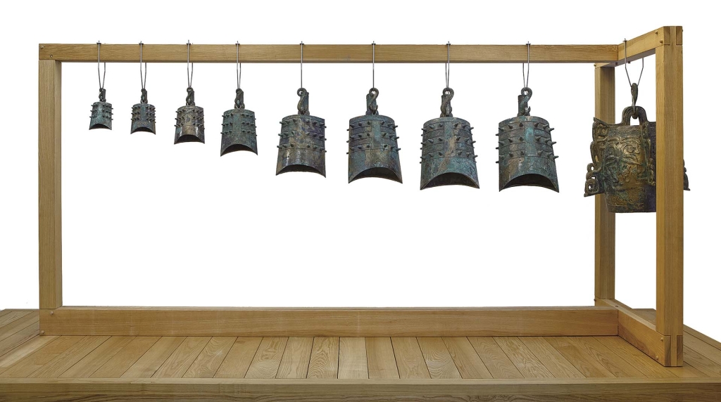 由於青銅得以從熔融金屬鑄成幾乎任何形狀,加上硬度和抗滲透性的特質,使其成為一種用途極為廣泛的材料,尤其是非常適合用來製作各種器皿。許多器皿是為了儲存酒、水和食物而設計的,而華麗的青銅器皿專門用於祭祀。此外,青銅的音色和迴響特質被用於製作銅鑼、銅鐘和各種樂器。在中國,工匠精心創造了一套套的成套編鐘,每一不同大小的鐘都有其特定的音調。展出作品包含中國的編鐘(圖10)、印度和印尼爪哇的青銅鐘以及越南的銅鼓。這件來自爪哇的青銅鐘是目前已知最大、裝飾最豐富的銅鐘(圖11)。此外,儘管青銅工具最終被鐵器取代,但具有卓越藝術品質的祭祀儀式器皿和許多武器仍繼續由青銅製成。