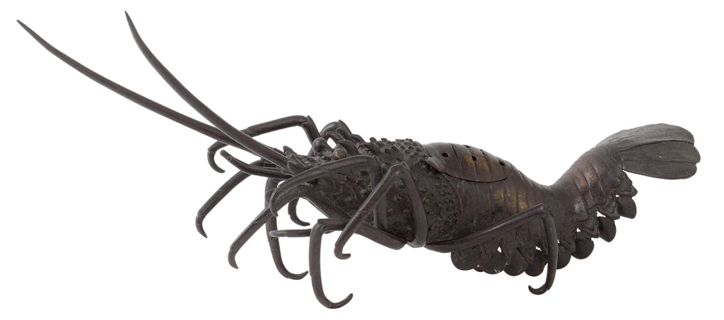 青銅作為一種用途廣泛、受人珍重的材料,在實用、儀式和藝術領域的多方面貢獻,證明了青銅的永恆傳承。青銅的吸熱特性使其成為香爐的理想材料。香爐是貴族生活和宗教儀式中不可或缺的元素,不僅實用於燃香來淨化和熏染空氣,後來還演變成奢侈的藝術形式,鑄造成祥瑞動物的形狀,如鳳凰、甪端等,或者各種精美,甚至誇張的造型,如龍蝦(圖12)等。