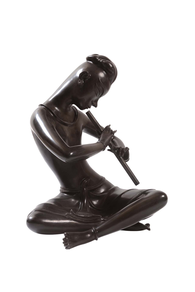 1940年代傳統主義在泰國復興,姆西里在大學美術系的職位讓他得以深入研究泰國的文化遺產。他從不同的來源汲取靈感,例如佛像、陶偶,以及蘇可泰時期(Sukhothai Period,1238-1438)的供奉牌。蘇可泰式佛教圖像中固有的線條、量感和形狀之美對他的藝術創作影響深遠。他最著名的作品之一〈音樂韻律〉(圖15)展現了二戰後西方現代抽象藝術與泰國傳統雕塑的融合。姆西里是第一批重新詮釋泰國傳統藝術並將其融入創作表現的藝術家之一,因此對泰國現代及當代藝術的發展軌跡產生了重大影響。