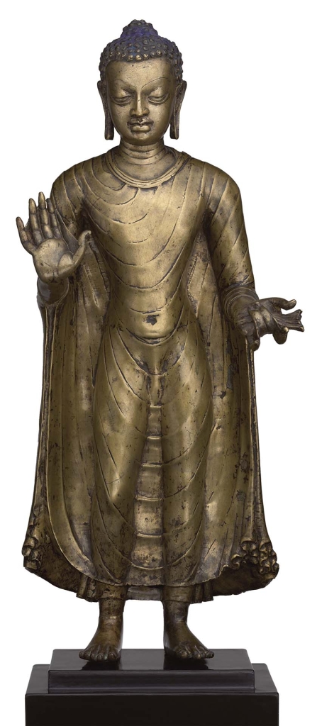雖然雕像在地中海世界與亞洲之間的移動並不常見,但其在亞洲內部的交流卻非常蓬勃。各作坊緊密接觸,所生產的作品則沿著連接亞洲大陸的不同的貿易網絡和朝聖路線綻放光芒。這種交流在佛教圖像的演變中反映顯著,從印度到中國、泰國和印尼、西藏及尼泊爾。東印度比哈爾邦(Bihar)出土的一尊立佛(圖6),是空心鑄造佛像的典範,佛像內部每隔一段距離就有一條不尋常的橫向豎管,穿過佛像的核心,令人聯想到面朝下的鑄造方式。這種有趣的創新技術只見於九座亞洲不同地區和時期的立佛,似乎是為了幫助金屬均勻地流經薄壁鑄件的各個部分,尤其是袈裟的衣褶。該佛像的風格和形象也被引入亞洲大陸,例如中國北魏時期的鎏金銅佛也受到影響。