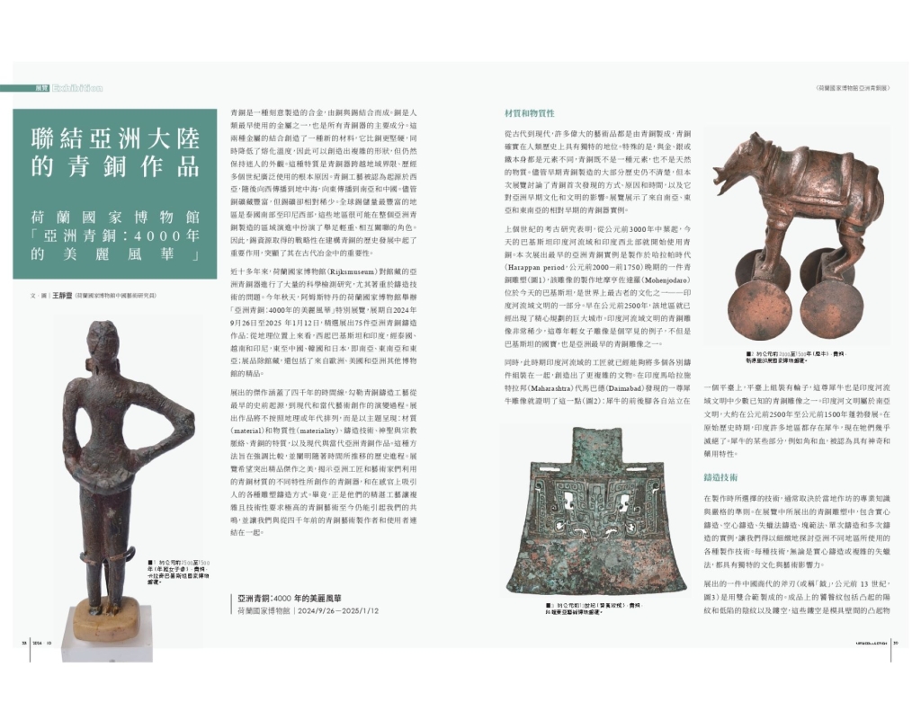 近十多年來,荷蘭國家博物館(Rijksmuseum)對館藏的亞洲青銅器進行了大量的科學檢測研究,尤其著重於鑄造技術的問題。今年秋天,阿姆斯特丹的荷蘭國家博物館舉辦「亞洲青銅:4000年的美麗風華」特別展覽,展期自2024年9月26日至2025 年1月12日,精選展出75件亞洲青銅鑄造作品:從地理位置上來看,西起巴基斯坦和印度,經泰國、越南和印尼,東至中國、韓國和日本,即南亞、東南亞和東亞;展品除館藏,還包括了來自歐洲、美國和亞洲其他博物館的精品。