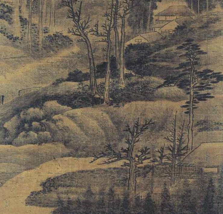 前述此畫由於張掛較久,絹地頗舊,山頭略有補筆,題字也略破損,畫家鈐印亦色澤黯泯不能辨讀。但從其標準的書法用筆結字,以及茅屋、柴門、小橋、樹石的造型及筆法種種來判斷,此軸為毫無疑問的龔賢真跡。