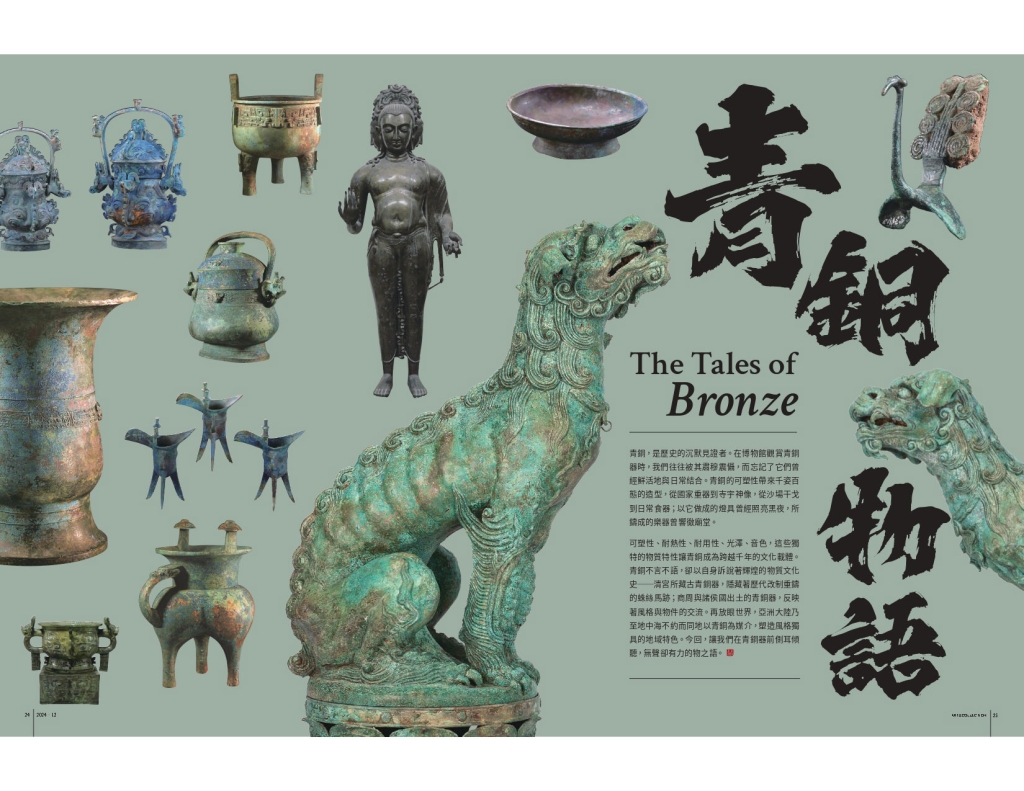 可塑性、耐熱性、耐用性、光澤、音色,這些獨特的物質特性讓青銅成為跨越千年的文化載體。青銅不言不語,卻以自身訴說著輝煌的物質文化史──清宮所藏古青銅器,隱藏著歷代改制重鑄的蛛絲馬跡;商周與諸侯國出土的青銅器,反映著風格與物件的交流。再放眼世界,亞洲大陸乃至地中海不約而同地以青銅為媒介,塑造風格獨具的地域特色。今回,讓我們在青銅器前側耳傾聽,無聲卻有力的物之語。