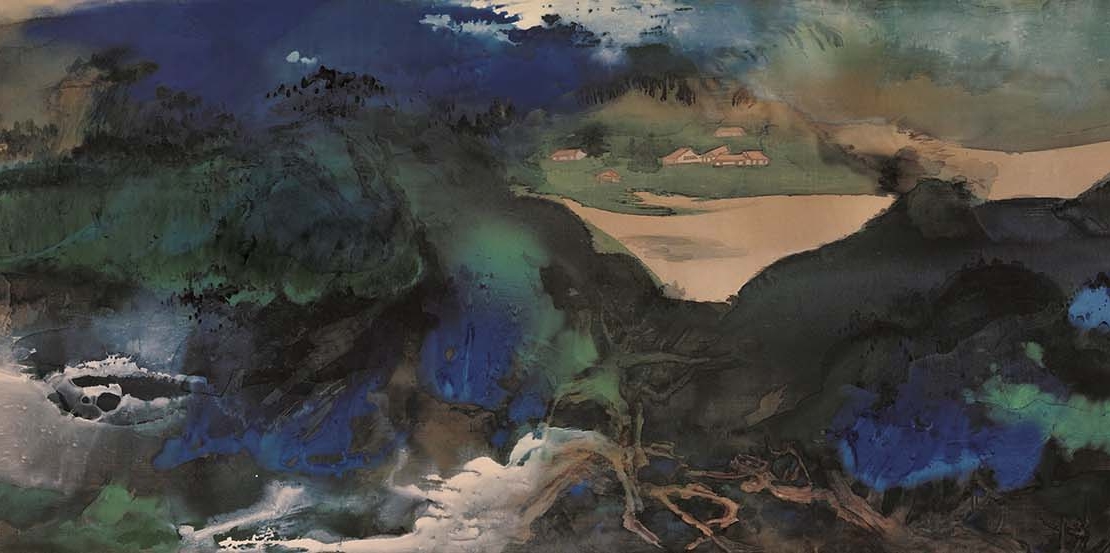 「愛痕湖」能得大名,實因2010年中國嘉德為方聞教授收藏的潑彩〈愛痕湖〉(圖2)舉行拍賣,經過60餘輪的叫價,最終以人民幣1.008億元成交。不僅再創張大千畫價的新紀錄,也是中國近現代書畫首次突破「億元」的門檻,〈愛痕湖〉遂成為張大千最具代表性的潑彩名畫。