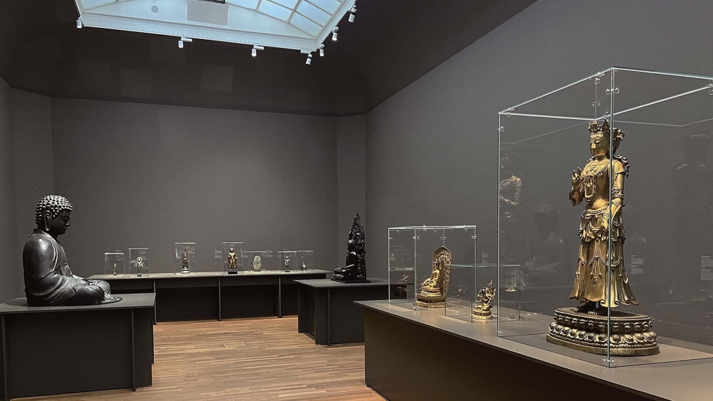 佛教為亞洲最重要的宗教之一,各個分支遍布亞洲及其他地區。雖然皆源自於佛陀釋迦牟尼的教義,但在隨著時空的發展,出現了許多不同的教派,每個教派都有其獨特的視覺詞彙和藝術表現。儘管如此,不同地區的佛教藝術仍然相互聯繫,在思想和圖像學上彼此影響。這些地區的工匠們都製作了佛像,並受到遠近信徒的崇拜和使用;僧侶和商人們在亞洲各地旅行,隨身攜帶這些佛教造像,通常是青銅雕像,就像本展間中所展示的例子。本展間主要呈現來自亞洲各地區5至18世紀,包括中國、日本、印尼、泰國、西藏、蒙古和尼泊爾的佛教造像。